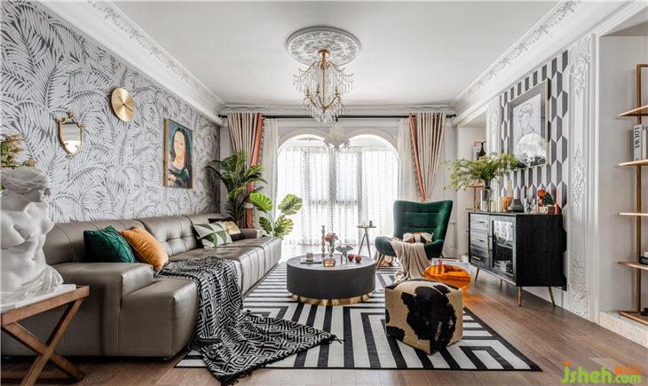客廳空間的整體氛圍相對(duì)于餐廳,更顯沉穩(wěn),色調(diào)以灰白黑為主,沙發(fā)選用了淺暖灰色皮質(zhì)沙發(fā),造型現(xiàn)代干練,材質(zhì)經(jīng)久耐用,局部軟裝進(jìn)行跳色搭配,暖橙與墨綠在抱枕、窗簾、單人絨布沙發(fā)、亞克力雜志架以及裝飾畫上交相輝映,在這現(xiàn)代法式的基調(diào)上融入了新鮮活力,造型古典優(yōu)美的水晶吊燈,仿佛一個(gè)典雅的公主,扭動(dòng)著她那婀娜的身姿,剔透柔美。