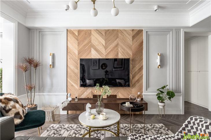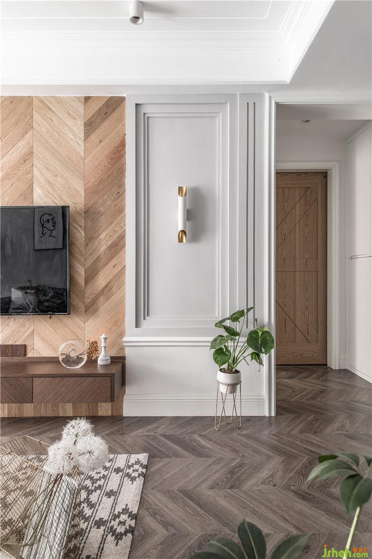 客廳的亮點(diǎn)就是電視背景墻的設(shè)計,想要空間簡練卻不簡單,實木魚骨地板上墻豐富背景的變化,打破單調(diào)給空間更多彈性,懸挑的電視臺解放衛(wèi)生死角空間,干凈又利落。