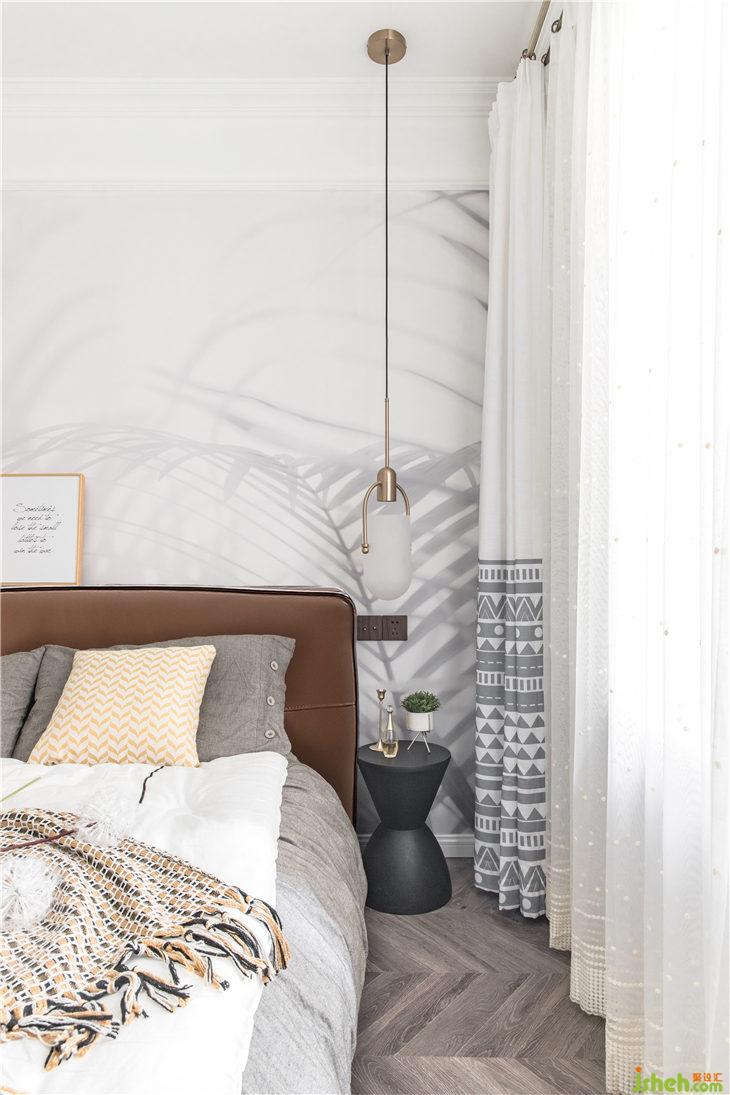 令人舒適的主臥空間,沒(méi)有過(guò)多的裝飾表現(xiàn),淡淡的枝葉剪影素色壁畫(huà),大面積留白的墻面,為的是一份慵懶撒入室內(nèi)的陽(yáng)光及那還在追逐的夢(mèng)想。