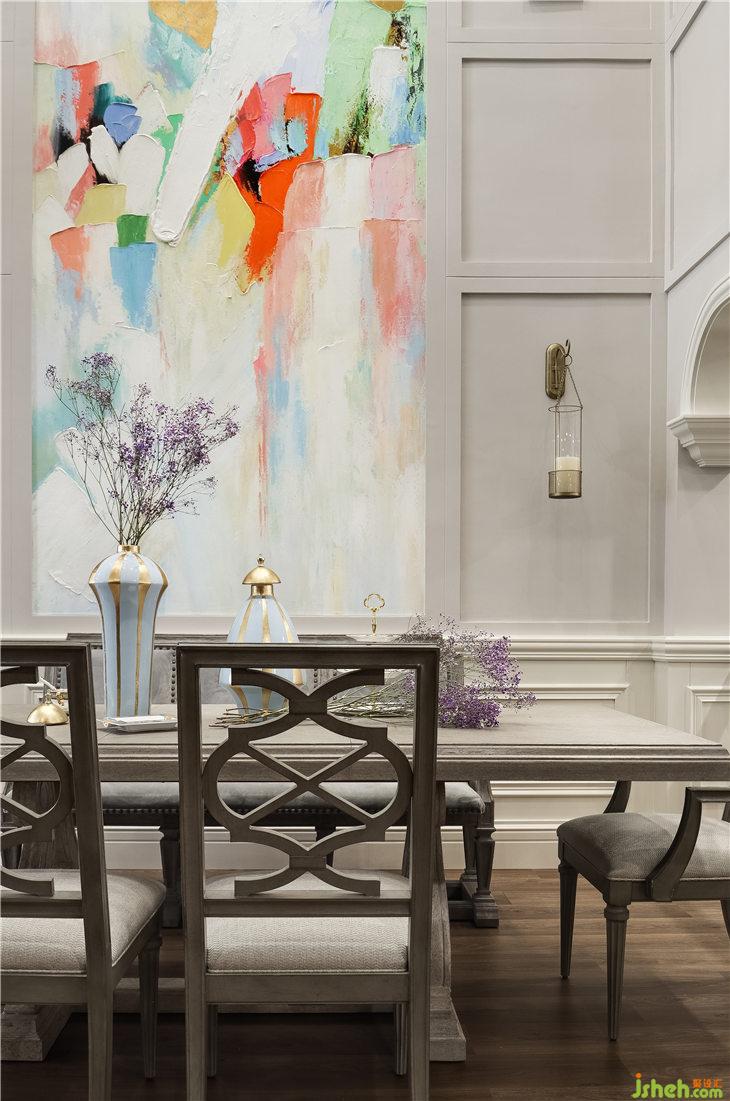 餐廳的家具,來(lái)自美克美家ART系列,米灰色調(diào)的復(fù)古美式風(fēng)格,褪去了傳統(tǒng)美式家具冗雜的造型,與我們經(jīng)典美式硬裝基調(diào)完美的融合。