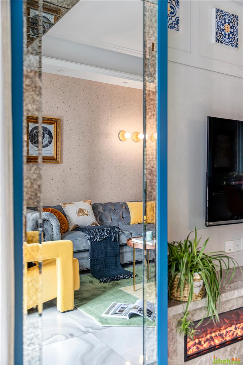 原始的陽臺推拉門,被折疊木門取代,四開的折疊門,可以同時收納到一側(cè),打開后,陽臺與客廳無縫銜接。