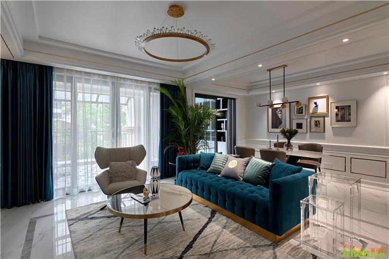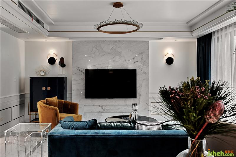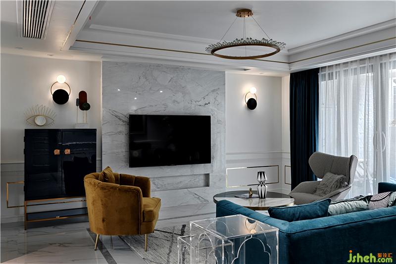 輕奢風(fēng)格中常用的材料,如大理石、黃銅元素、絲絨、皮飾、瓷磚等,都可以經(jīng)過巧妙的混搭與組合,讓空間的奢華感上升到一個新的高度,打造出深受年輕人喜愛的現(xiàn)代家居。比較基礎(chǔ)的大理石瓷磚搭配大量的金屬元素、石膏線條,再加上一些閃亮的裝飾元素作為點綴,輕松、優(yōu)雅、知性,又能很好體現(xiàn)出輕奢風(fēng)格之美。