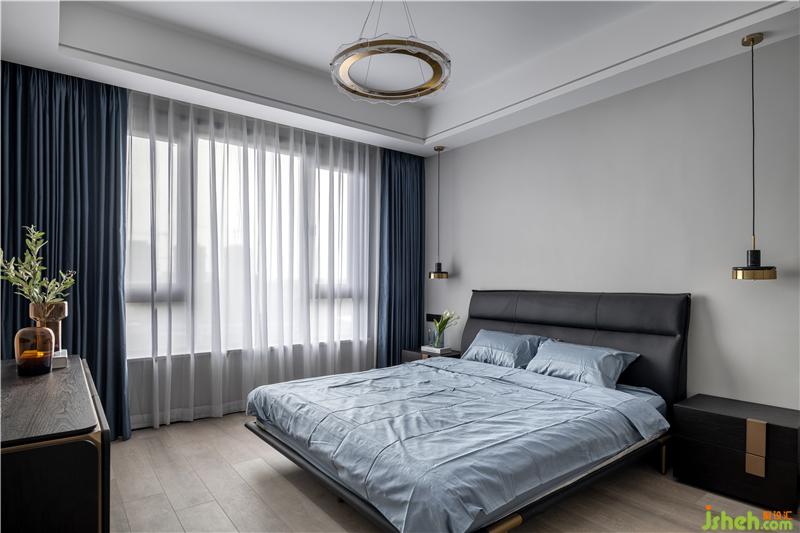 老人房是為業(yè)主父母偶爾過(guò)來(lái)小住準(zhǔn)備的,靜謐的藍(lán)色為老人營(yíng)造出了一個(gè)舒適的睡眠空間。