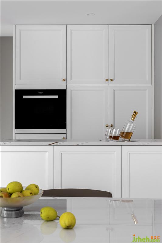 把生活陽臺改為中廚,合理利用空間;簡餐可以在西廚進行,增加與家人的互動。