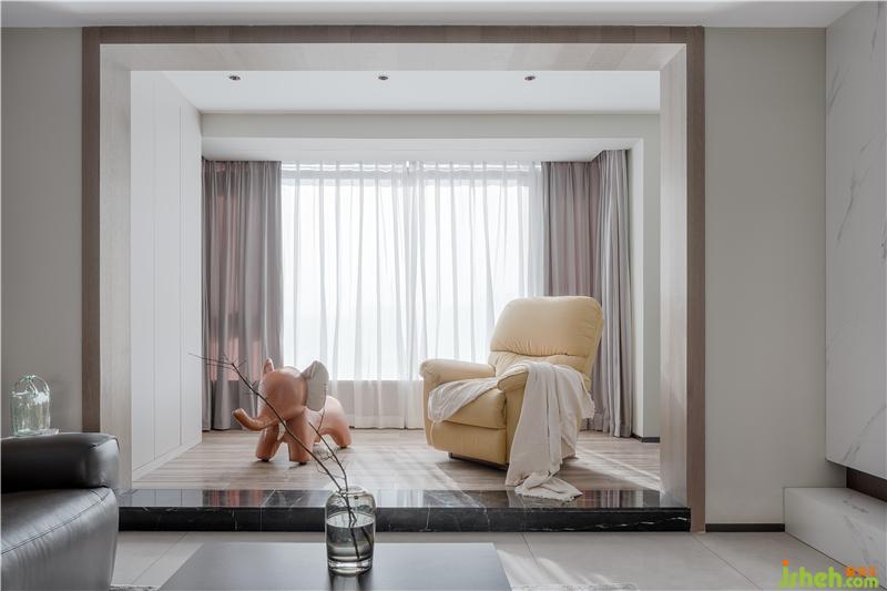 大大的落地窗讓陽光更好地灑進(jìn)來,橘色小象和橙色搖搖椅給這個(gè)空間注入了更多活力因子。