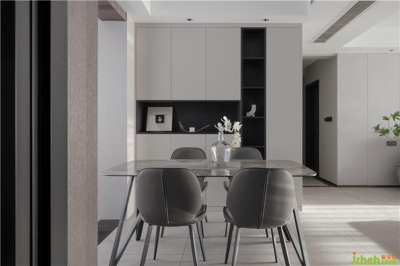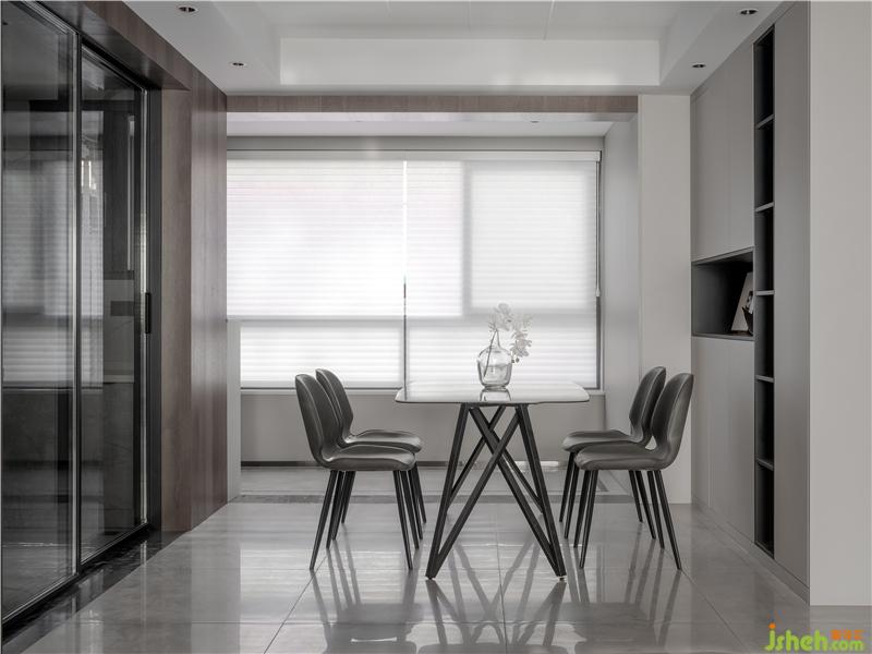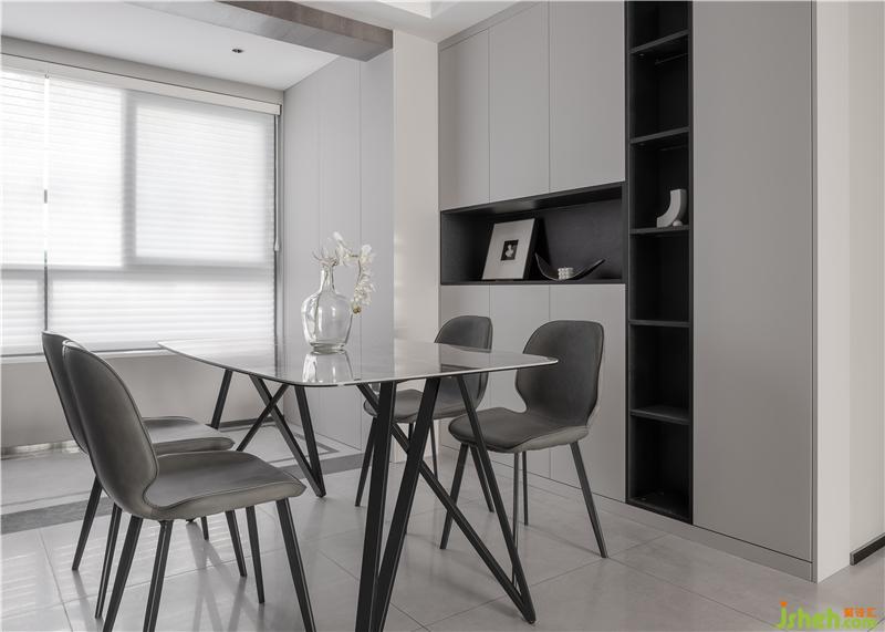 餐邊柜、百葉窗、地磚用色形成呼應(yīng),簡約大氣。餐邊柜有著超大的儲物空間,柜體用小面積的黑色加以點(diǎn)綴,使得空間在干凈的基礎(chǔ)上更顯質(zhì)感。