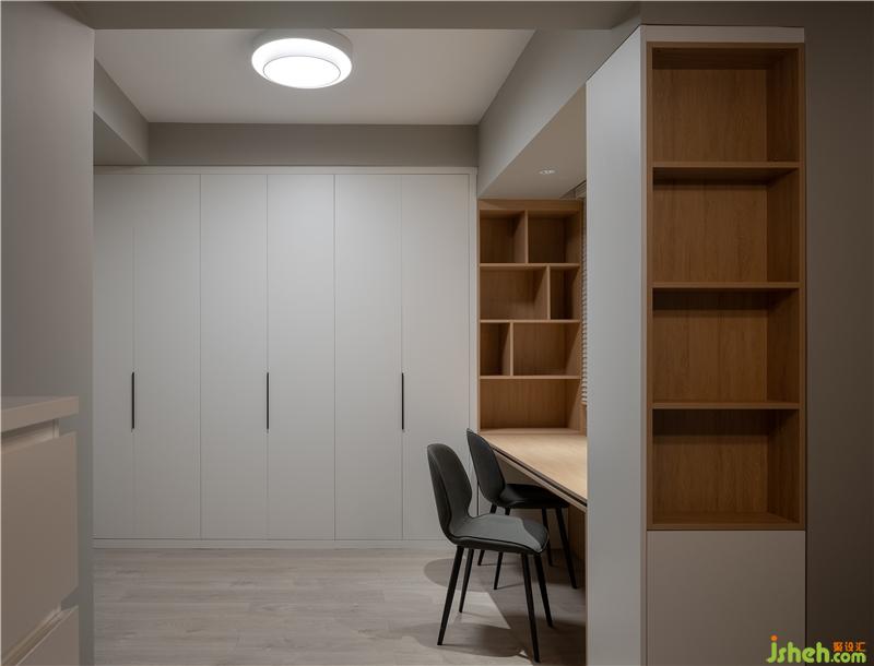 兒童房基裝改動較大,將兩個房間打通做成了書房套臥室的布局,更加合理,讓空間在擴大的基礎(chǔ)上也保持了原有的使用功能。
