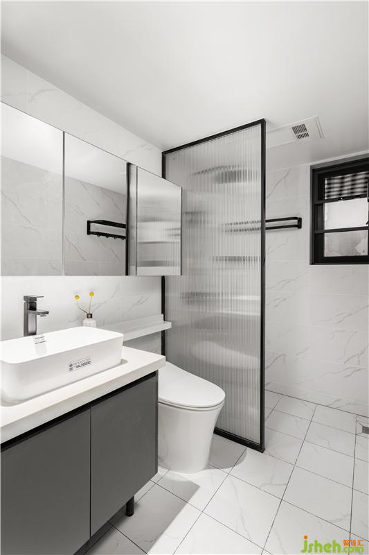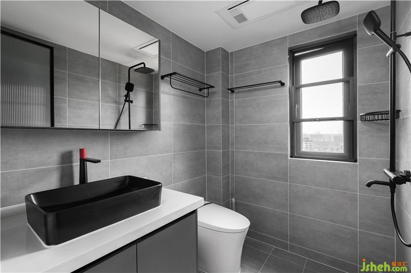次衛(wèi)主打淺灰色,增強了空間質感,讓整個空間顯得純粹、干凈。