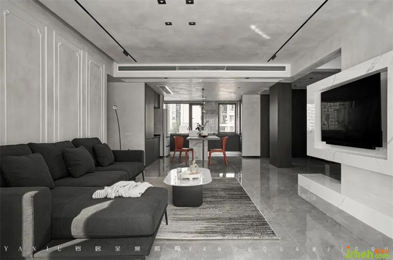 裝修設計結(jié)構(gòu)整體調(diào)整后的公區(qū),視覺空間上擴大了接近兩倍。墻頂面保證了材質(zhì)的一致性,地面也要保持整體性,盡量不要有明晰的分割線。所以設計師選用了相近的美縫顏色,盡可能地去柔化分割線。