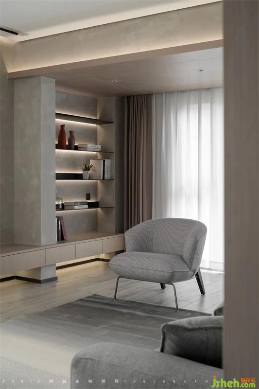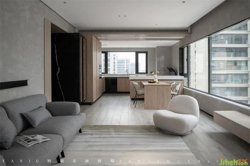 內(nèi)包進(jìn)來的陽臺做成了全落地窗的形式,一來優(yōu)化采光,二來方便公共區(qū)域的通風(fēng)。