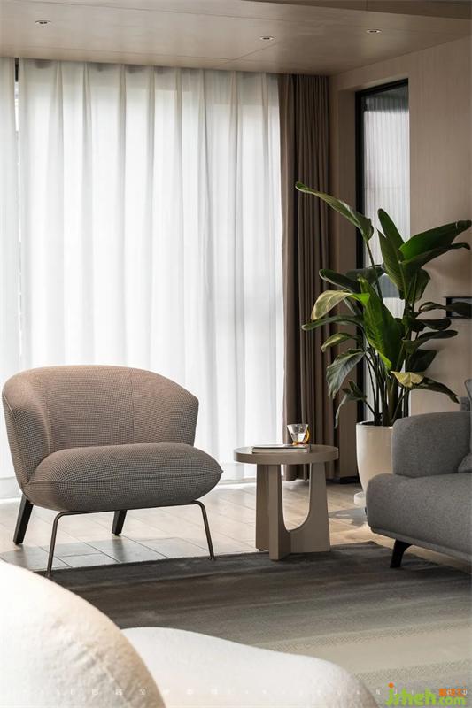 客廳布置簡潔,小型家具給家人留出更多活動空間,同時擴展視覺效果,顯得通透舒適。墻面木飾面板豐富空間層次,完善風(fēng)格表達(dá)。