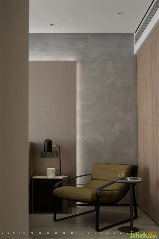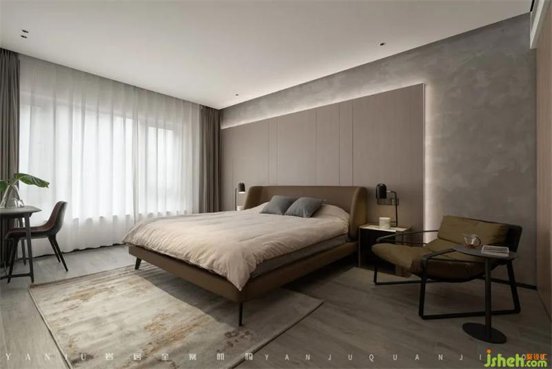 主臥延續(xù)功能至上的理念,不做復雜設計,用飽滿的采光與沉穩(wěn)的背景來營造舒緩的休憩空間。