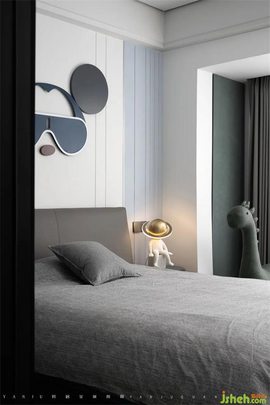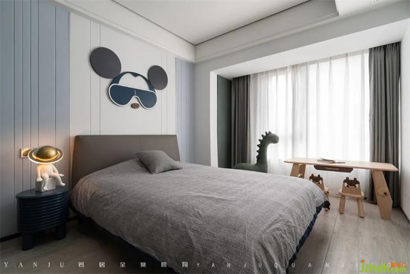 兒子房的藍色調和米奇元素都是小男孩最愛的。整個房間基本上是1:1地還原了效果圖,實現(xiàn)了業(yè)主想要的家的樣子。