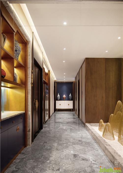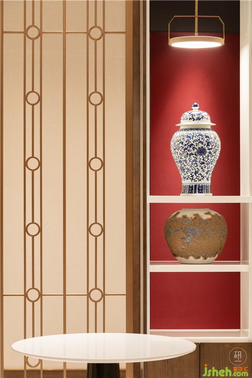 以現(xiàn)代材料呈現(xiàn)造型形態(tài),從家具、色調(diào)到陳設(shè),兼具著東方雅致特質(zhì),也保持著細(xì)節(jié)美感。當(dāng)東方美學(xué)與現(xiàn)代設(shè)計融合于此時,空間中更有藝術(shù)感。