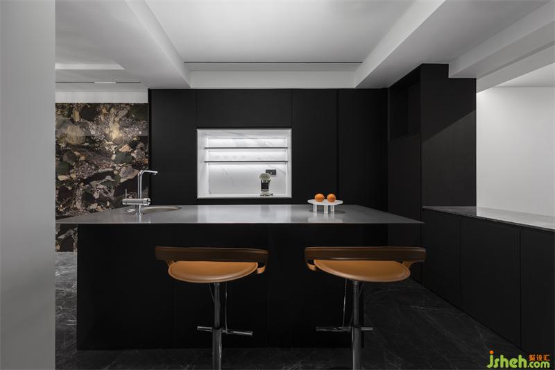 借助戶外花園景觀,設(shè)計師小有心機的運用電動陽光頂和側(cè)立玻璃窗。打開自然光的普照及微風(fēng)的攝入切換流通。