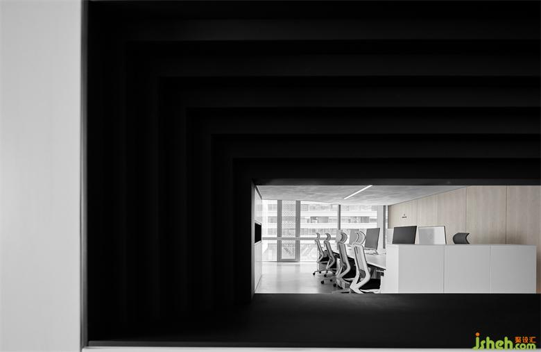 正如高技派代表人物理查德·羅杰斯所言:“建筑是捕捉光的容器,就如同樂器如何捕捉音樂一樣,光需要可使其展示的建筑?!睙o論是過道,亦或是辦公區(qū),一條貫穿其中的主線便是光與影。通過對光影的巧妙運用,將每一天、每一分、每一秒的微妙變化都展現(xiàn)在空間中,辦公室設(shè)計展示了建筑美學(xué)上的對比與統(tǒng)一。