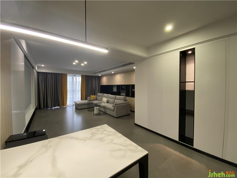 設(shè)計(jì)亮點(diǎn):業(yè)主是一對(duì)即將步入婚姻殿堂的年輕夫婦對(duì)這套父母留給自己的老房子結(jié)構(gòu)和儲(chǔ)物能力不是很滿意,原客餐廳空間太過(guò)擁擠整體格局不順暢,光線不足。而業(yè)主對(duì)于房屋的風(fēng)格喜歡現(xiàn)代風(fēng)格。在做方案初期考慮這套房子是當(dāng)前兩口居住的情況未來(lái)可能是幸福的三口之家,這套房子不予父母同住.于是將 原本4房?jī)蓮d的格局變成3房2廳的。原有公共空間采光都需要借用到陽(yáng)臺(tái)光線照入,所以就考慮讓客餐廳的為橫向排列讓光線能直接照射到餐廳,讓整體公共空間顯得更加寬敞再加上設(shè)計(jì)上的反燈帶的做法給空間增加亮度和一些溫馨的氛圍.把其中一個(gè)臥室功能定位于接待休閑的臥室,流出一部分地方作為景觀也借此吧外界新空氣和光線引入原本昏暗無(wú)采光無(wú)通風(fēng)的主衛(wèi)。整體風(fēng)格就以現(xiàn)代風(fēng)格為主加入些黑鈦的裝飾。當(dāng)業(yè)主看到格局及功能時(shí)就對(duì)客餐廳的的格局非常滿意也是他內(nèi)心所向往的家。