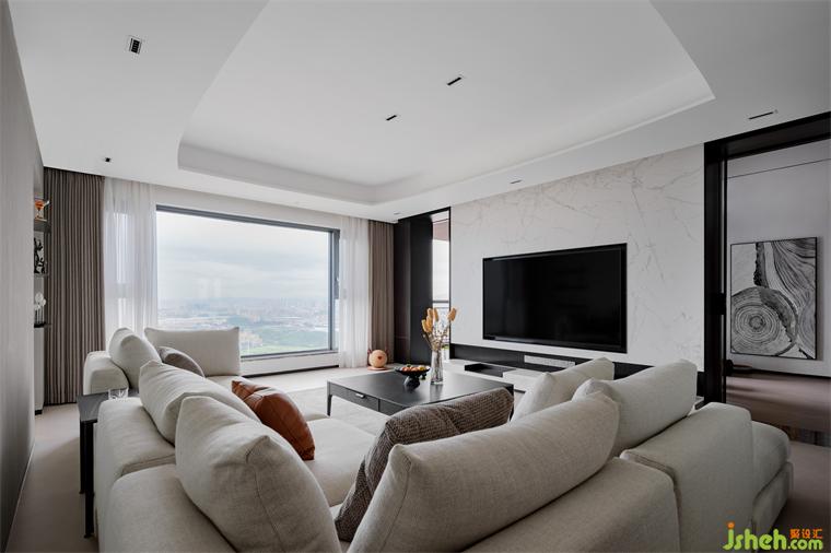 這是一個毫不吝嗇大面積玻璃窗的家居空間,天朗氣清陽光肆意,讓視線自然地渡到窗外的珠江及城市風(fēng)光,同時減少光的無效反射,空間由此具備迎面而來的開闊感。天花板以白色為主,裝修公司制造光的體積,配以科學(xué)的燈光設(shè)計,恒大御景半島裝修設(shè)計讓光線的整體通透性再次提高時也不用擔(dān)心給眼睛增負(fù)。