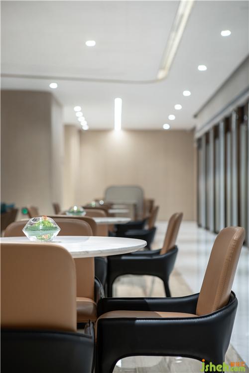 流線型燈帶散發(fā)出溫潤的光,帶著綿延的時(shí)間感,折射出空間內(nèi)和諧的洽談氣韻。
