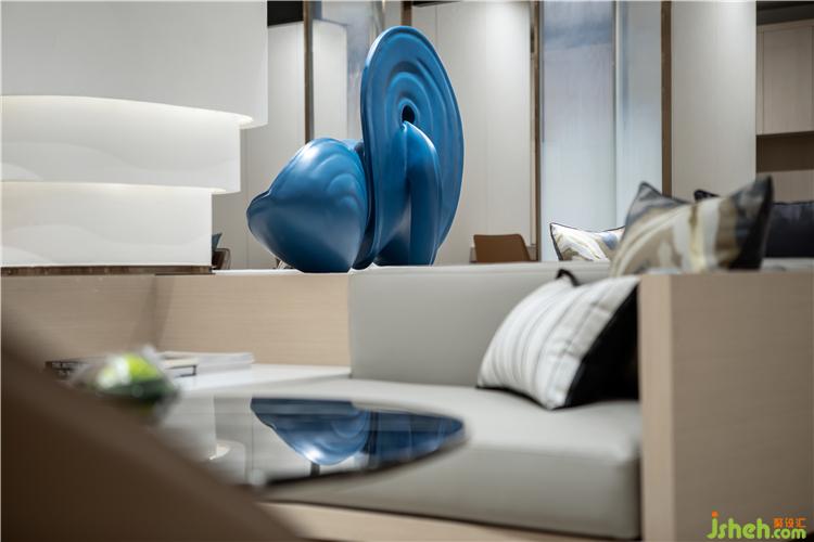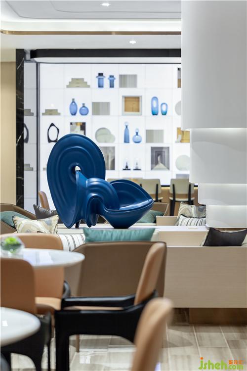 藍(lán)色藝術(shù)品打破原來空間的沉悶,動(dòng)感有力的形態(tài)為空間注入一股積極蓬勃的動(dòng)感和趣味。