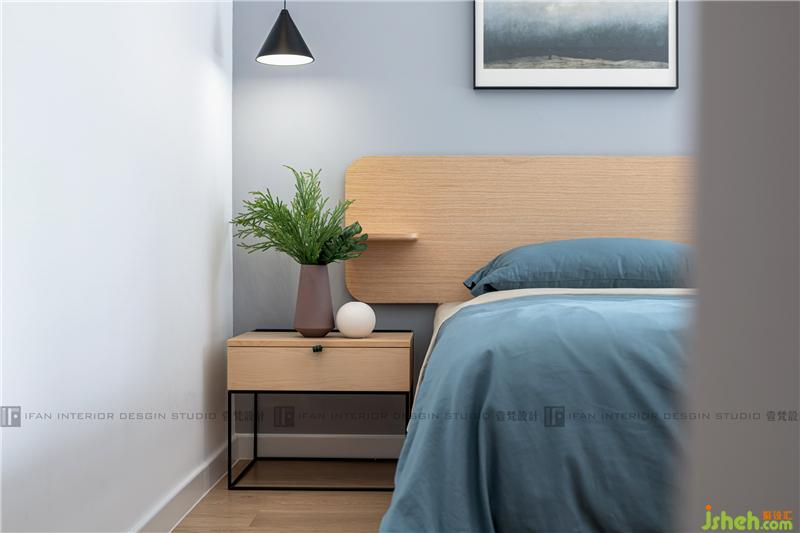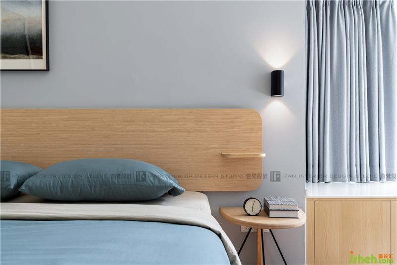 本案在材質(zhì)上大面積使用原木,窗明幾凈,室外一片生機(jī)勃勃綠景,置身于空間,一呼一吸皆清新,如著迷于柳絮的薄,由身到心輕盈自在;休憩空間室內(nèi)設(shè)計(jì)師以柔和的藍(lán)色和原木色為主調(diào),居住者更趨于放松、平靜的狀態(tài)。