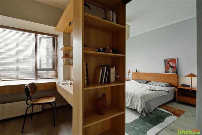 主臥采用了原木元素,并在搭配上增加了富有儀式感的細(xì)節(jié)。