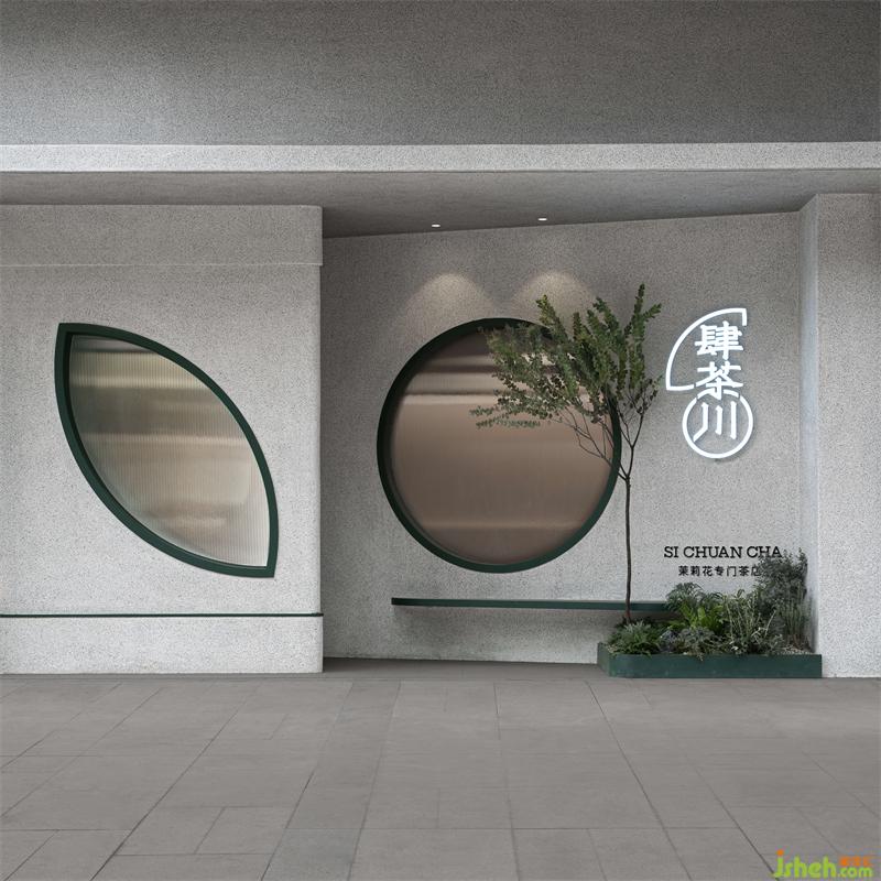 整體空間區(qū)域劃分不同,門(mén)口綠植和log的融合凸顯標(biāo)志性自然與健康的理念,門(mén)左邊玻璃的運(yùn)用使室內(nèi)通透性更強(qiáng),展示傳播產(chǎn)品制作過(guò)程,吸引路人。進(jìn)門(mén)右邊拍照打卡區(qū)不影響客人品茶聊天,左邊產(chǎn)品出品區(qū)客人隨時(shí)可觀(guān)看產(chǎn)品出品流程,也可品茶看窗外風(fēng)景