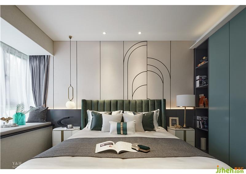 空間整體是比較現(xiàn)代簡約的風(fēng)格,大面積的灰綠色墻面簡約別致,奠定空間整體基礎(chǔ)色?;揖G色墻面的采用溫馨而大方,搭配米色的地板,協(xié)調(diào)且不沉悶。