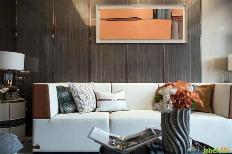 步入客廳,色調(diào)以弱對(duì)比的層次變化在空間循序變幻,夾絲玻璃背景墻,以一幅抽象元素掛畫(huà)作為空間內(nèi)點(diǎn)綴,同時(shí)空間陳設(shè)以低飽和度色彩相互組合,整個(gè)空間在以橘色作為點(diǎn)綴色的襯托下?tīng)I(yíng)造了一份低奢、內(nèi)涵的紳士空間。