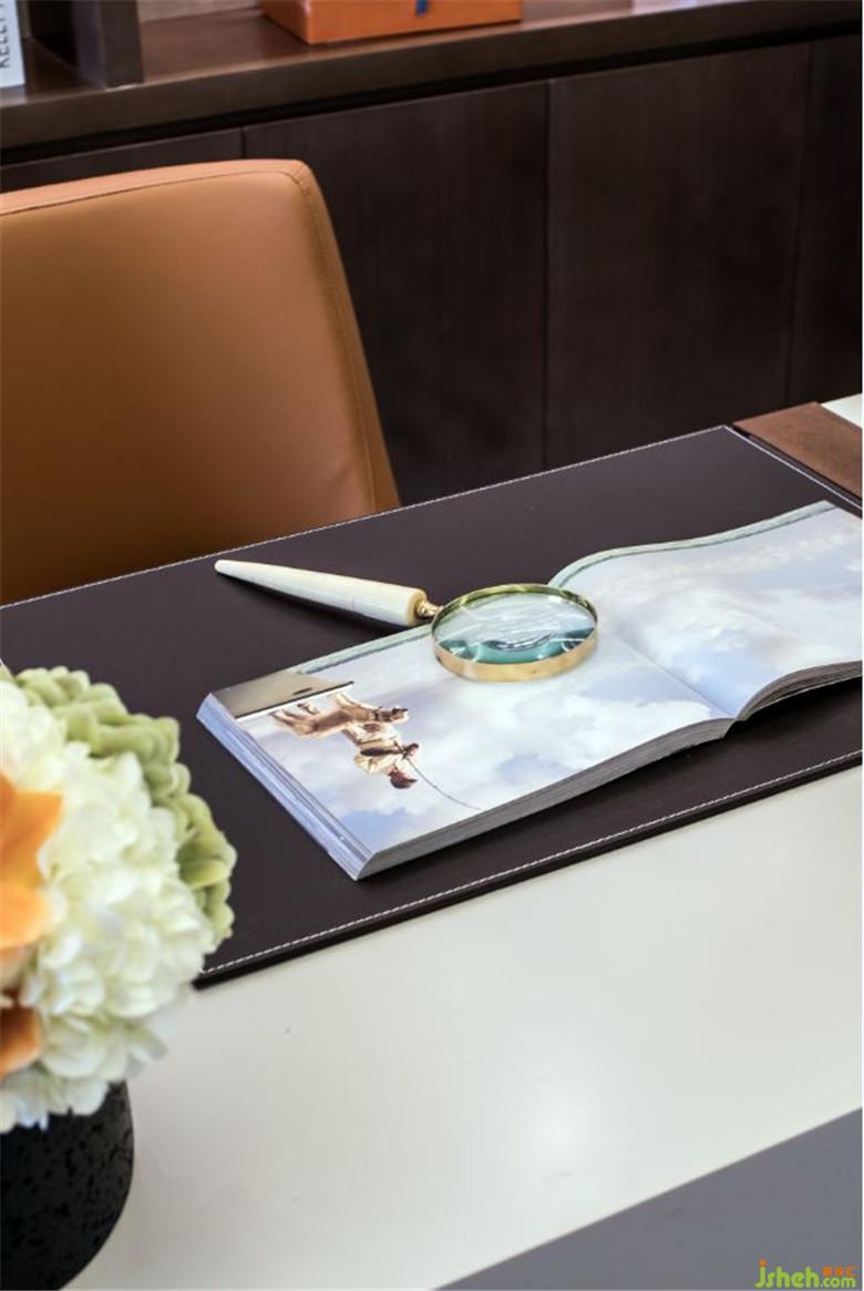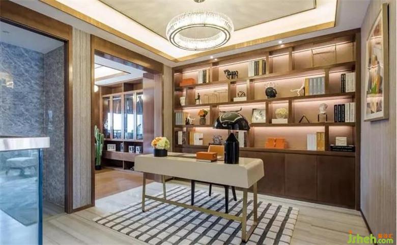 作為整個(gè)空間的精神場所,它是最富有人文氣息的場所,胡桃色木飾面作為書架的背景色,選取深色擺件點(diǎn)綴空間,輕靈的燈具選型頗有藝術(shù)感的臺燈造型,搭配方形格地毯增加空間內(nèi)線條錯落感,使得真?zhèn)€空間井然有序。