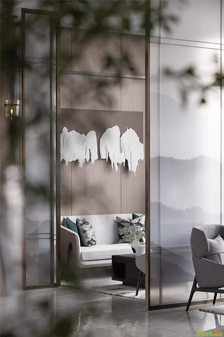 微風(fēng)細(xì)細(xì),修竹影交加,月色與流水雅澹相生,讓人恍若棲隱山林,塵囂皆濾,心歸靜寧。溫潤光澤的玉馬雕塑,仿若時刻靜觀霧隱竹林,白色的基底上暈染開的黛色,一灰一白簡單的色彩對比,使空間格局顯得愈加純粹與強烈。屏風(fēng)的靈動感,出眾而不張揚,它重新定義了神秘的東方氣韻。
