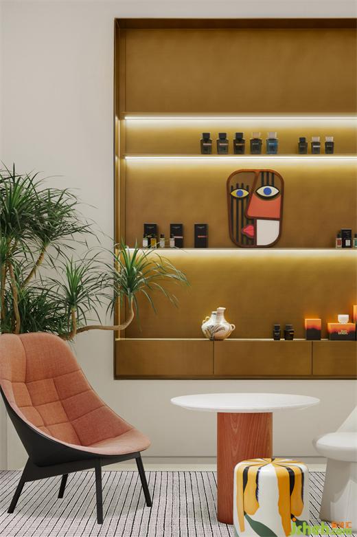 穿過(guò)應(yīng)季更新的展示走廊,前臺(tái)接待、公共活動(dòng)、私密洽談三大區(qū)域,會(huì)員中心設(shè)計(jì)通過(guò)色彩與材質(zhì)的呼應(yīng),制造各空間體塊穿插、互動(dòng)的效果,讓商業(yè)高定的藝術(shù)趣意在方正的小空間內(nèi)伏筆自由。