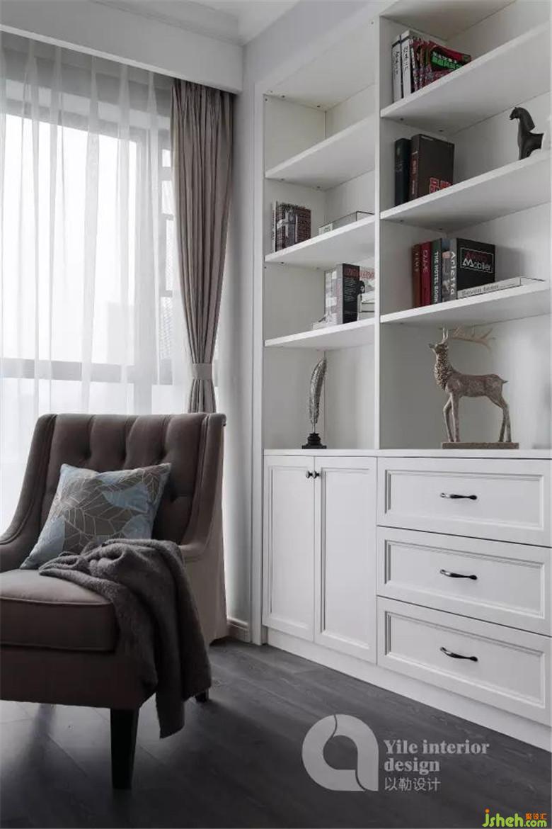 書房一入眼就是白色的柜子,室內(nèi)設計師搭配暗灰色的地板,感覺空靈與寧靜。