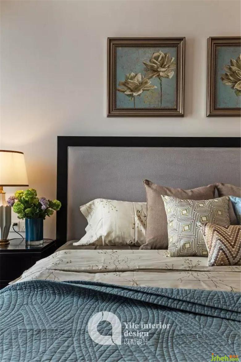 主臥濃厚的美式風格,在光影下,一切都是寂靜無聲的,又是充滿著生命力。