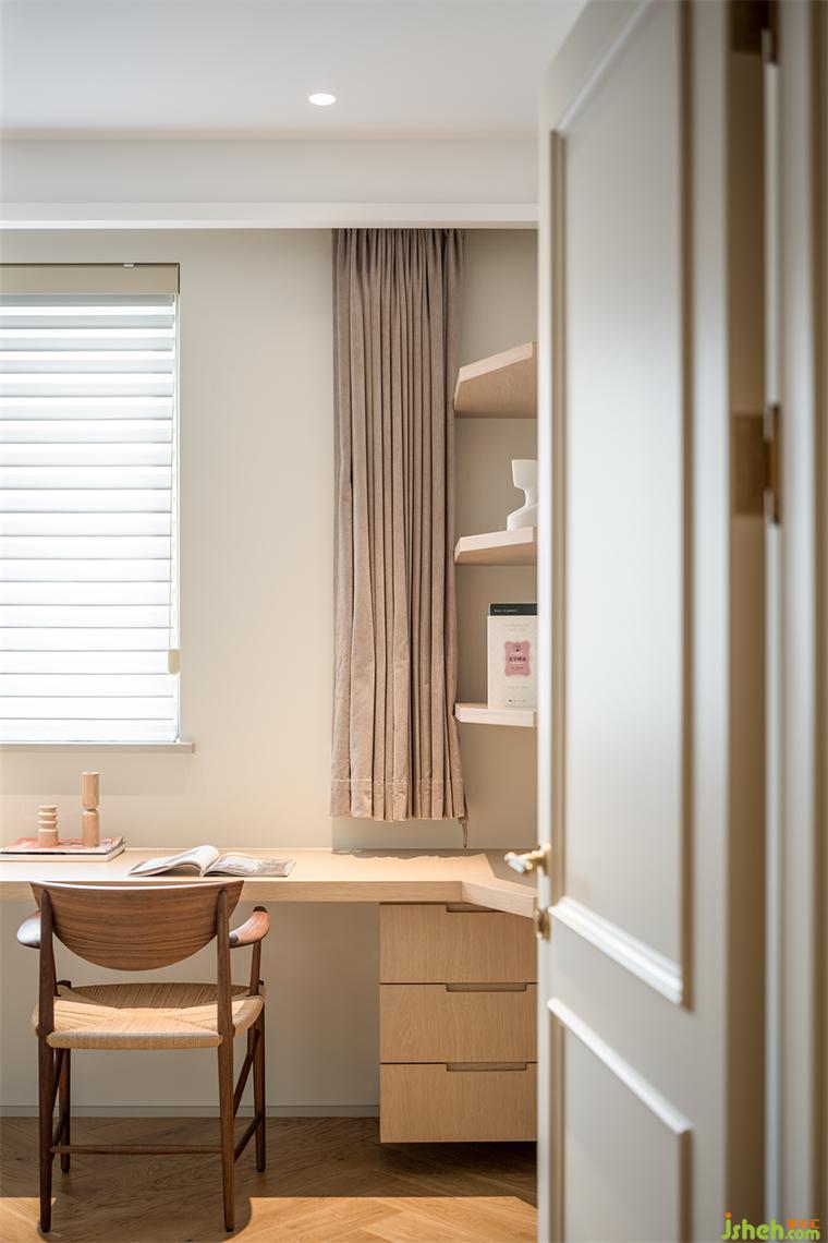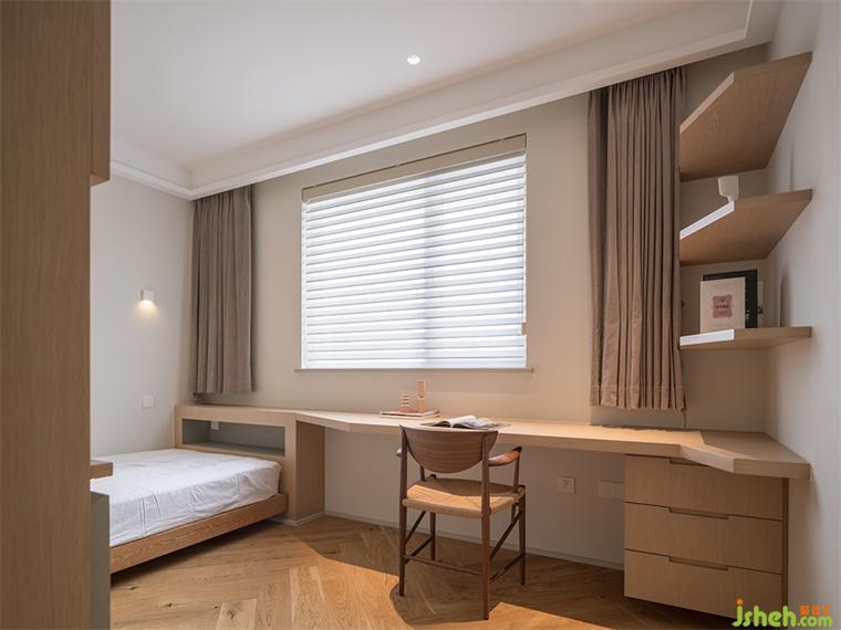 兩個獨立兒童房也做了強大的儲物收納設計,寬敞的可活動范圍以及一體化寫字桌,方便小朋友做作業(yè)或招待同學。