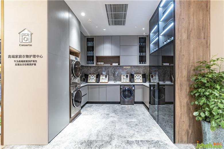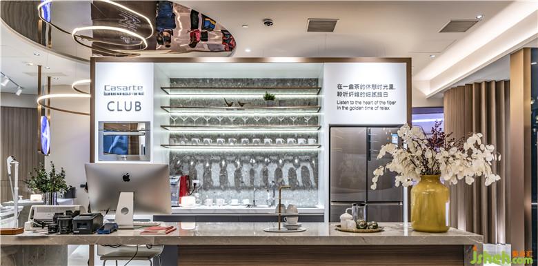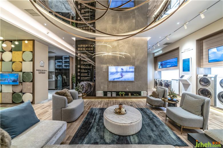 入口形象區(qū)以水鏡倒影與漣漪之光的設(shè)計(jì),做為門市主題的開場(chǎng)呈現(xiàn),延伸了天花的空間視覺感。柔和的大地質(zhì)感做為水流與日光間的緩和過場(chǎng),產(chǎn)品展示區(qū)、衣帽間、洗衣房特別加入木質(zhì)拼接地板、木頭格柵、大理巖面、灰楬皮革等自然質(zhì)地的材料,提升舒適氛圍。