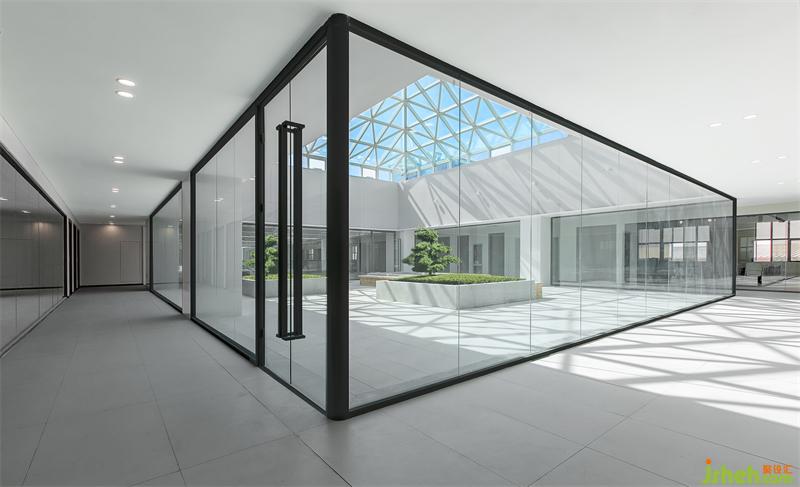 建筑規(guī)劃開(kāi)始我們就充分的考慮新疆地區(qū)充足的日照特點(diǎn),室內(nèi)空間照明白天基本依靠自然采光,陽(yáng)光在空間中不同的時(shí)段的折射的變化帶給空間獨(dú)特而富有變化的視覺(jué)審美,辦公室設(shè)計(jì),華孚時(shí)尚VI中黑,白,灰,紅基本色在空間中被堅(jiān)持貫徹和運(yùn)用,凸顯出企業(yè)品牌價(jià)值和審美,材料運(yùn)用上我們反對(duì)堆砌,這也和華孚品牌價(jià)值觀(guān)相契合,材料品種少而基本的語(yǔ)言搭配同樣可以帶來(lái)不一樣的空間體驗(yàn),我們嘗試用啞光地磚,涂料,玻璃,簡(jiǎn)約而極致的組合,給研發(fā)中心空間注入純凈而輕盈的獨(dú)特氣質(zhì)。