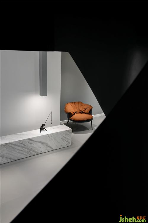 餐廳的餐邊櫃采用半透明的玻璃櫥窗,搭配內(nèi)嵌燈帶帶來的明暗效果,呈現(xiàn)出極強的藝術感,立體雕塑作為裝飾,營造出氛圍。