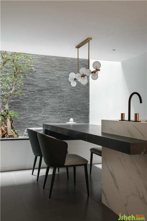 疊墅設(shè)計為了打破空間的局限性,設(shè)計師把下沈庭院打通至負(fù)二層,將原有的封閉式樓頂,開出一口采光井,線條幹練有力,讓外部光線自然傾瀉下來,照亮室內(nèi),使整個空間都獲得了自在的呼吸之柱。
