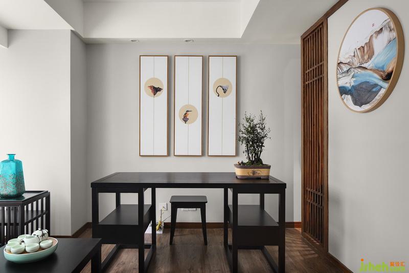木質(zhì)家具搭配中式裝飾畫舒適大方。