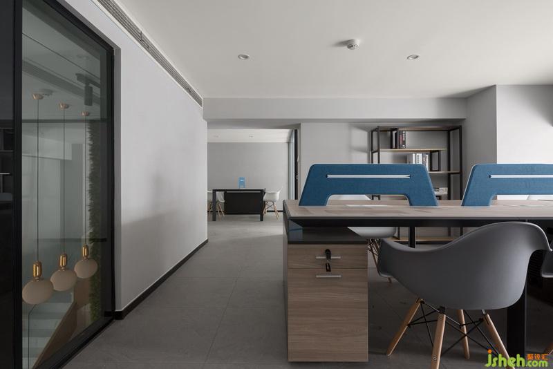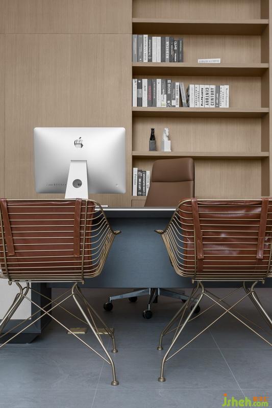 統(tǒng)一的現(xiàn)代設(shè)計(jì)風(fēng)格,色調(diào)大氣,線條簡(jiǎn)潔,局部的藍(lán)給人穩(wěn)重舒適感。線條簡(jiǎn)約的書架,讓空間落落大方。
