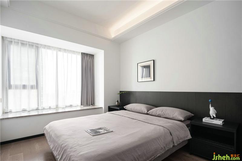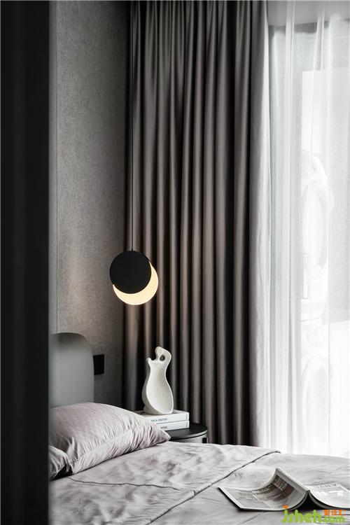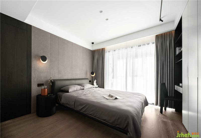 主臥帶主衛(wèi),考慮實用性及隱秘性,但又追求整體美,設(shè)計上用隱形門手法,讓視覺上連貫整體,又保留了功能性。裝修設(shè)計