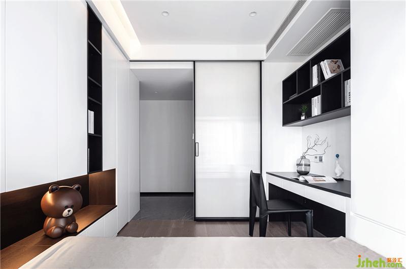 書房兼客房,一室多功能。長虹玻璃劃分空間,又讓光線通透。