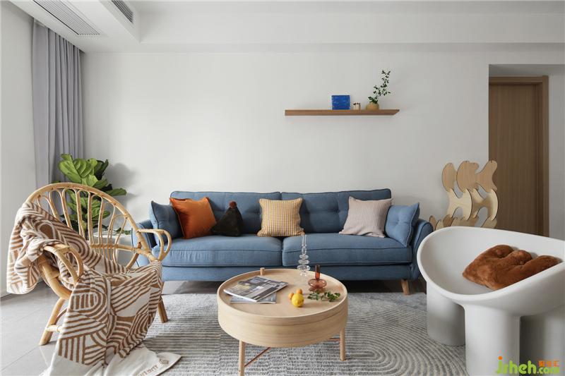 留白沙發(fā)背景,延續(xù)純凈主題,局部添加了一段隔板,可以擺放一些精致的小物,表達對生活的熱愛,也豐富了墻面的層次。