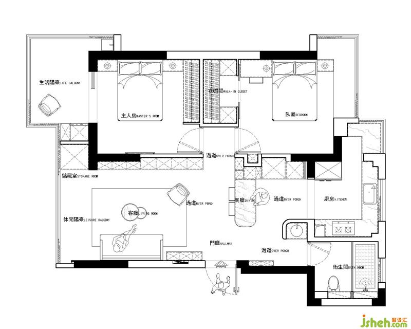 想要一個(gè)衣帽間。采用金屬置物架的方式 ,可自由調(diào)節(jié)衣物規(guī)劃區(qū), 配合吊軌移門的形式,打造一個(gè)精致的步入式衣帽間。