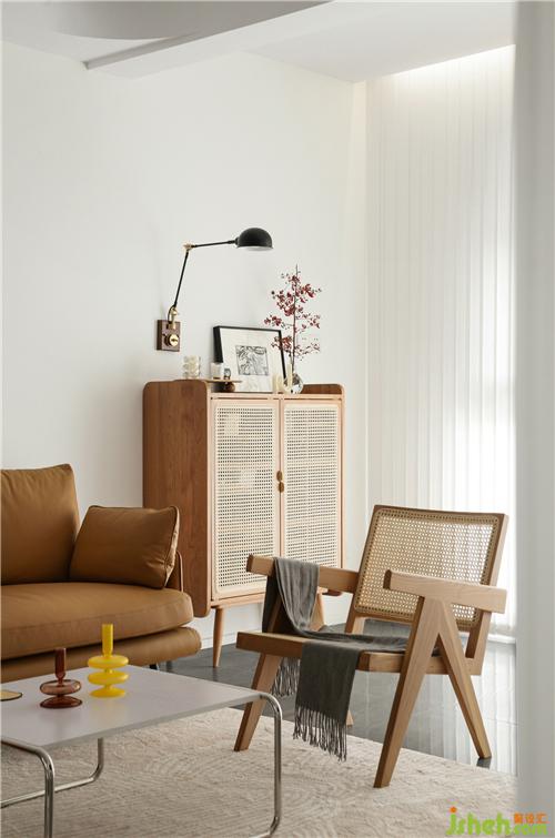 沙發(fā)背景干凈簡(jiǎn)約,木橙散發(fā)緩緩暖意。