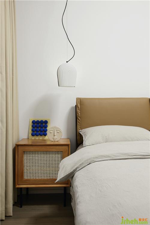 次臥的金屬壁燈,自成亮點,家里的每一個燈都有各自的美,裝飾空間,滿足照明。一面衣柜,滿足衣物的收納。
