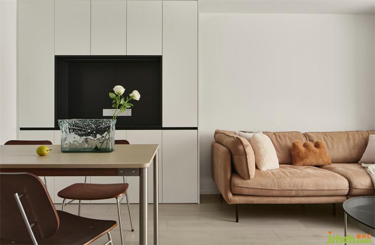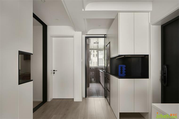 廚房臺(tái)面根據(jù)業(yè)主身高做了高低落差,廚房由擇菜、洗菜、切菜、炒菜、承盤這幾部分組成,室內(nèi)設(shè)計(jì)師不同的功能從舒適角度上看對(duì)于高度的需求不同