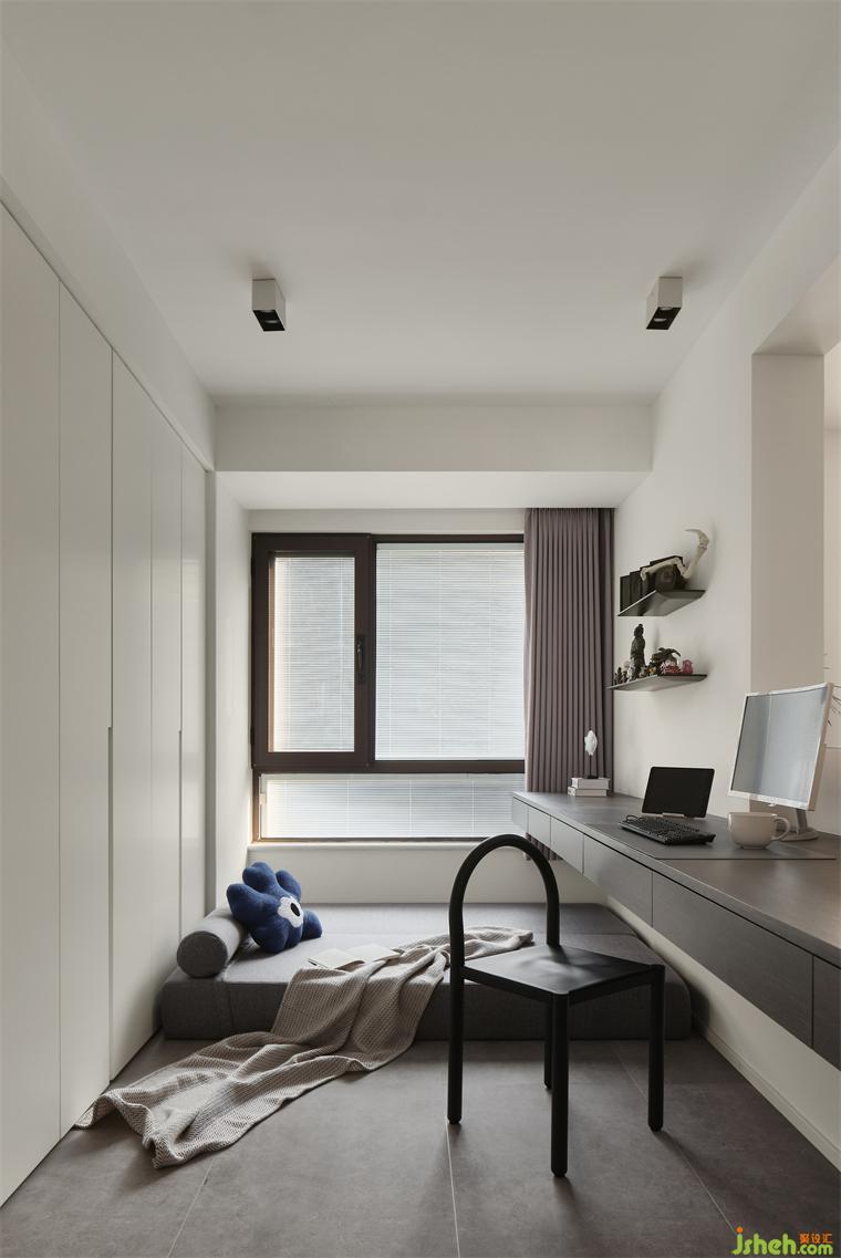 極簡(jiǎn)空間流露小巧思,為女主在主臥現(xiàn)場(chǎng)制作了簡(jiǎn)潔梳妝臺(tái),裝修設(shè)計(jì)梳妝臺(tái)與衣柜一體,整個(gè)空間都因它而變得生動(dòng)。
