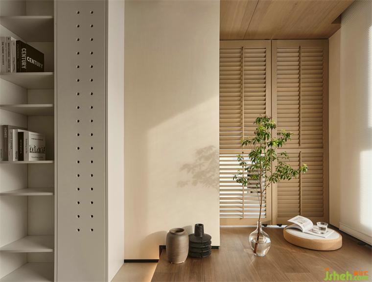 主臥原衛(wèi)生間改為衣帽間,書桌臺(tái),部分柜門做成了鏡子,設(shè)計(jì)實(shí)現(xiàn)了更理想的生活狀態(tài)。